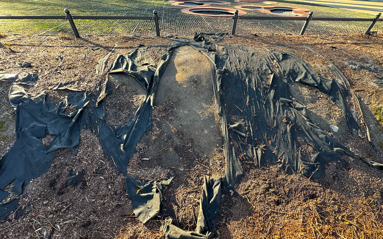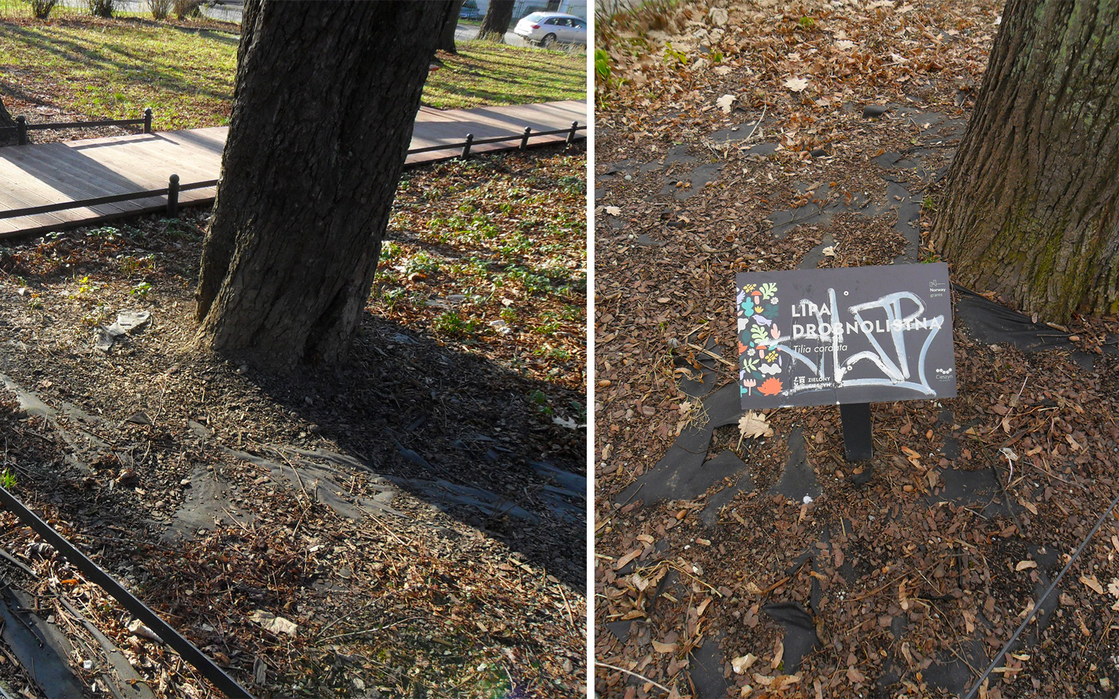 Do pewnego momentu sama dawałam się na to nabrać, jednak moim przekleństwem okazała się nadmierna czujność i niezgodność obserwacji z deklaracjami. Punktem kulminacyjnym było tutaj „wzmocnienie bioróżnorodności” Parku Kasztanowego za pomocą czarnej szmaty (zwanej agrotkaniną czy agrowłókniną), z niemałym dodatkiem betonu, gumy i innych materiałów.