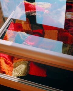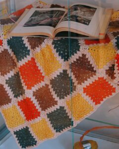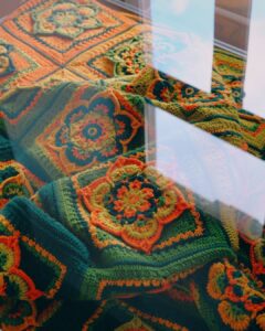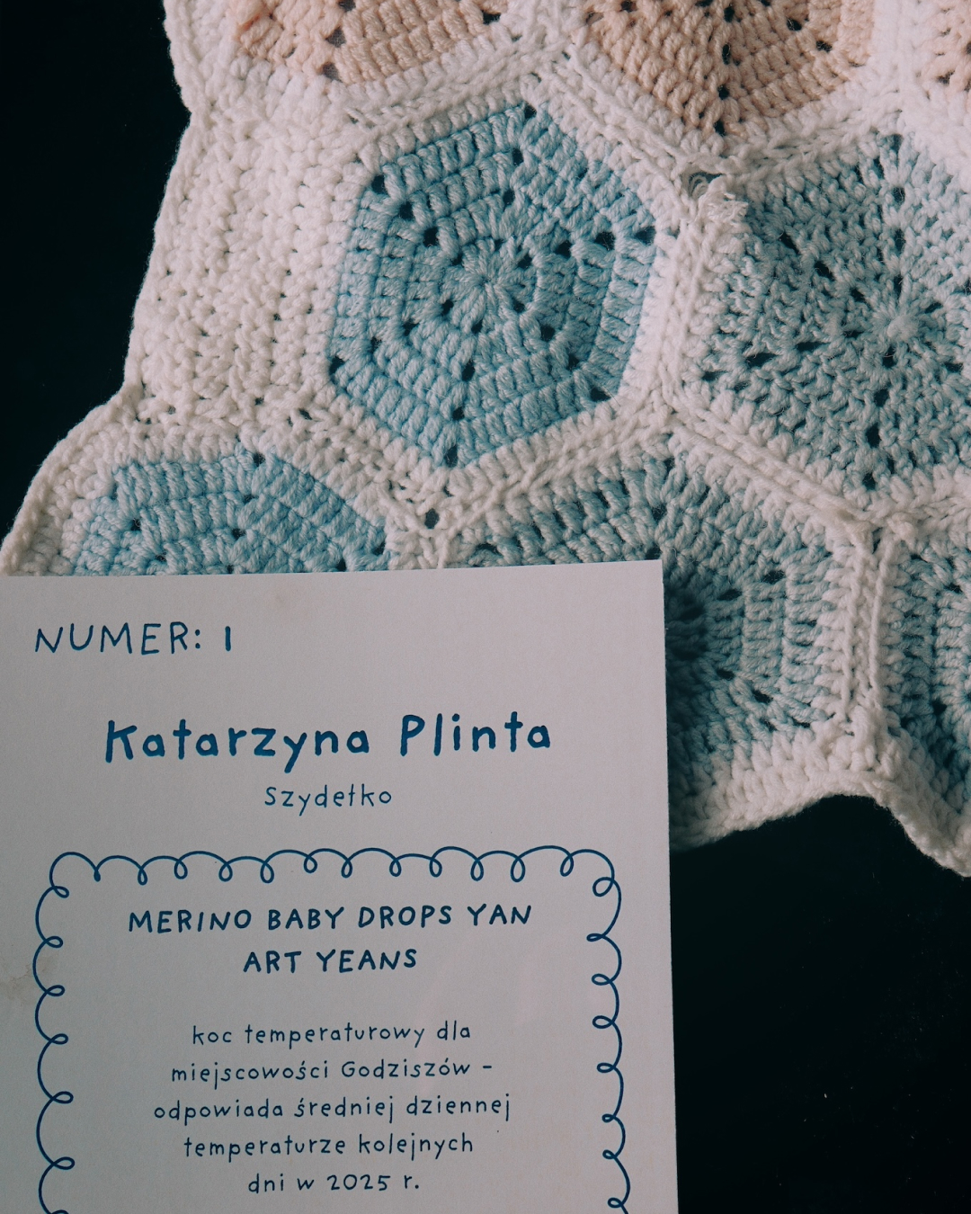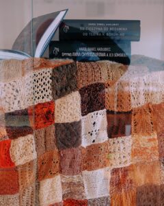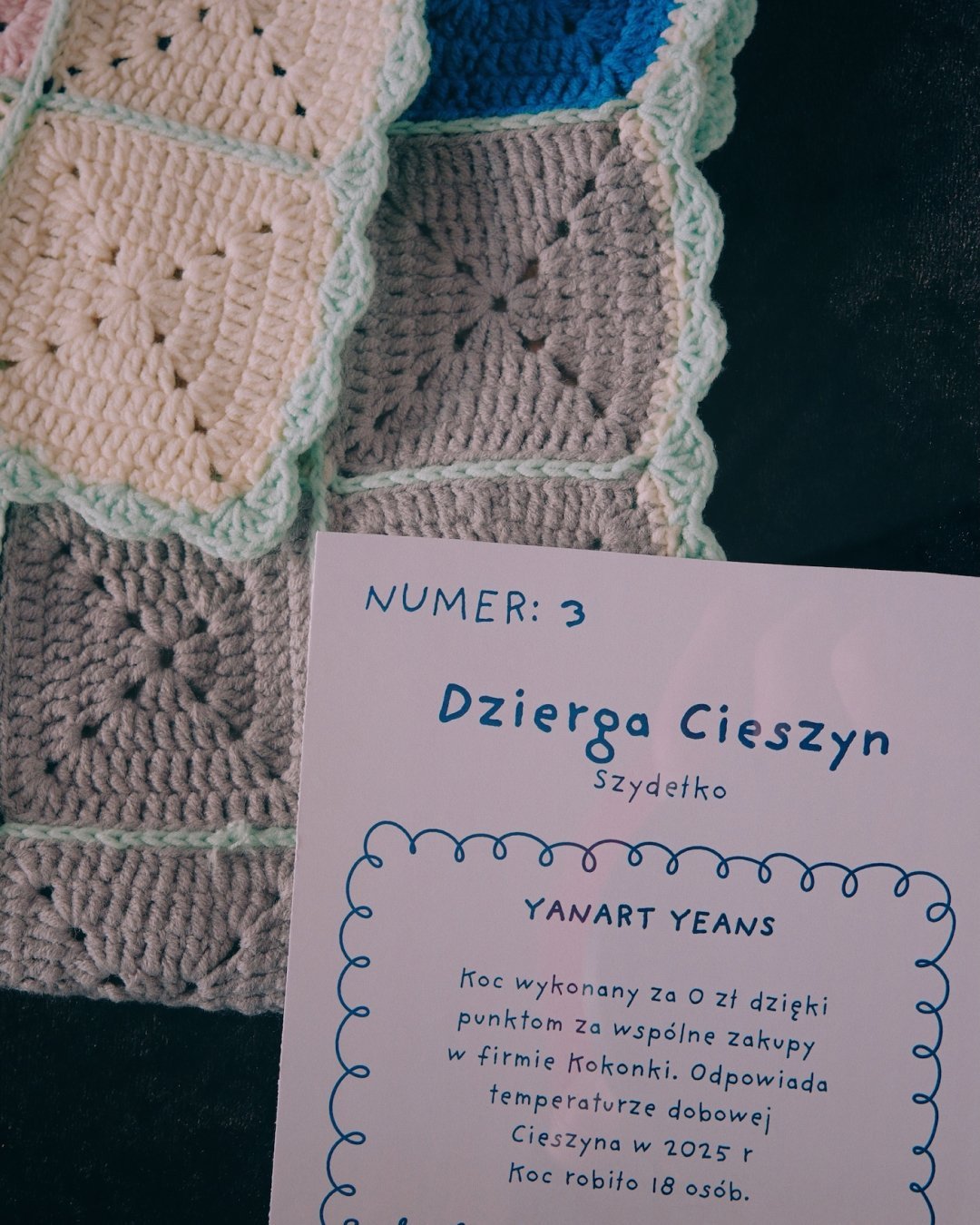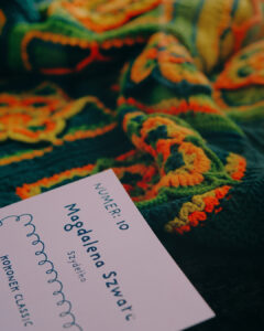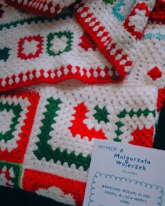 Z bliska widać coś więcej niż tylko podział na kategorie. Widać tu konsekwencję. W projektach temperaturowych – rytm kolejnych rzędów, które dzień po dniu budują wizualny kalendarz. W klasycznych kompozycjach – precyzyjnie zestawione moduły, symetrię i cierpliwość, które nie pozwalają na przypadek. Niektóre prace przyciągają intensywnością kolorów, inne spokojem powtarzalnego wzoru. Wszystkie łączą ogromna dbałość o detal i kunszt rzemieślniczy. Dziewiarstwo nie wybacza pośpiechu. Każde oczko ma znaczenie.