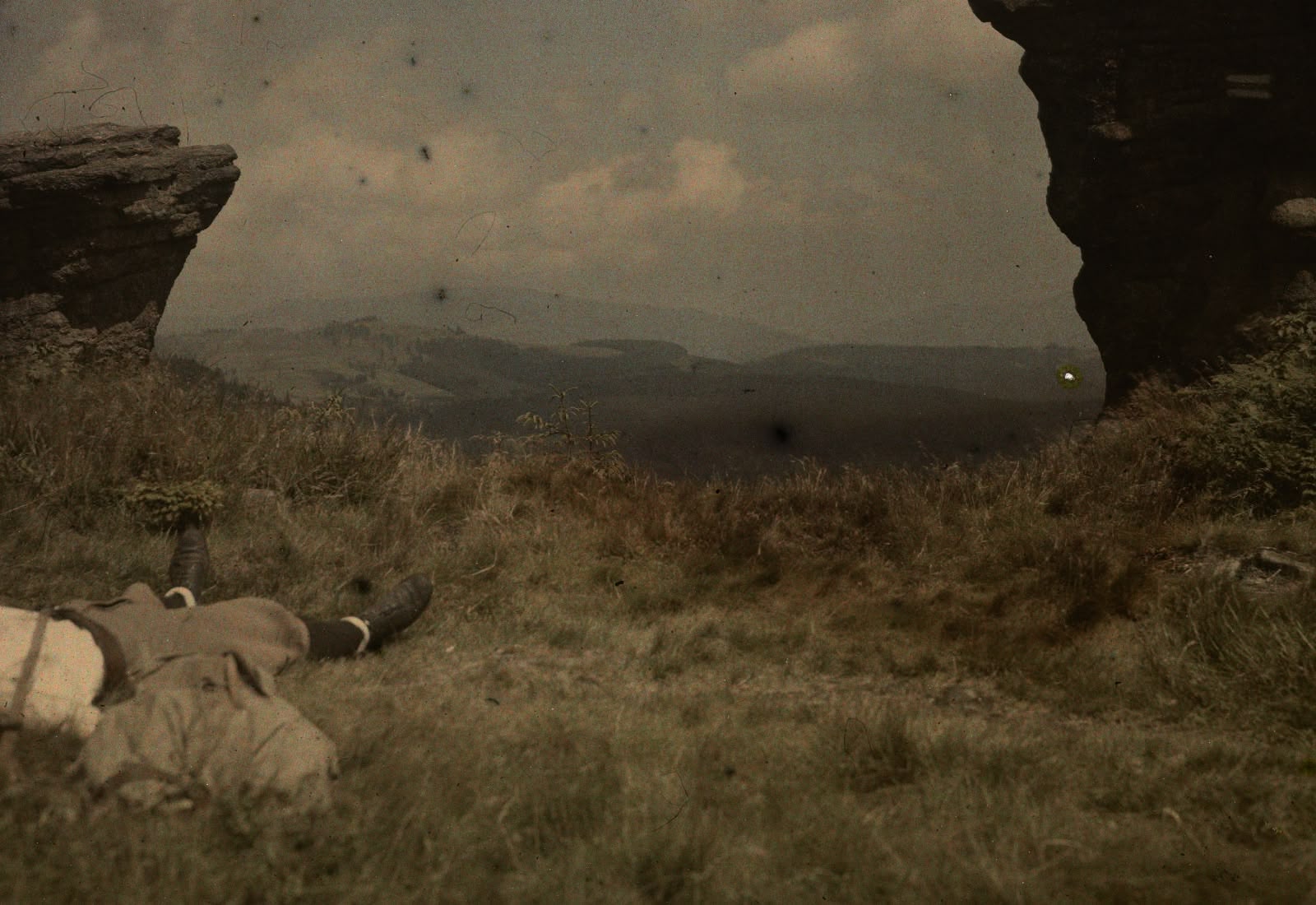 Fragment obozu harcerek na tle krajobrazu gór wchodzących w skład Beskidu Śląskiego 1932. Dokumentował Jankowski Adam. źródło: NAC