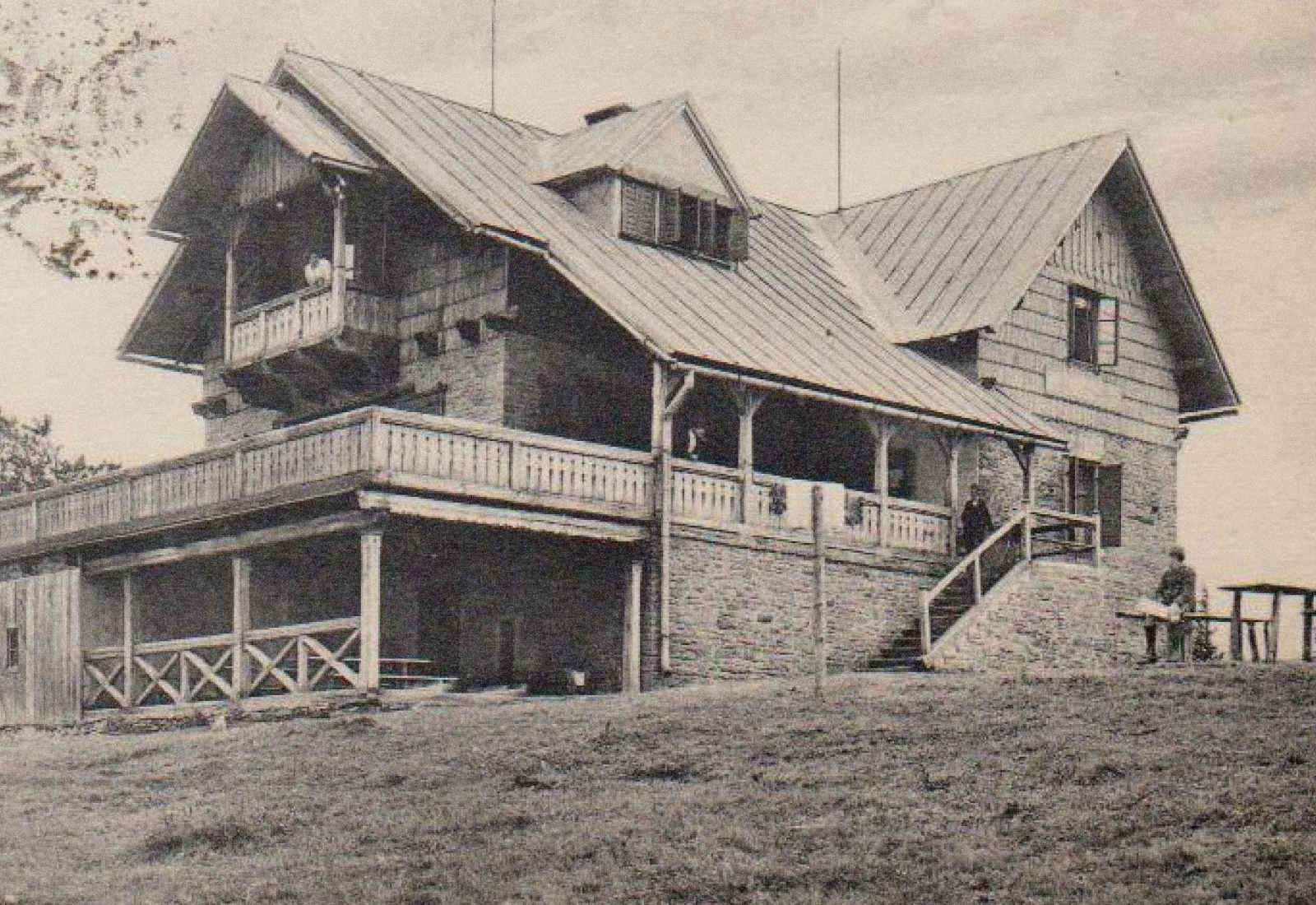 Zamieszczone zdjęcie opisane jako schronisko Klementinenhutte to w rzeczywistości najstarsze w Beskidzie Śląskim schronisko Beskidenverein’u na Szyndzielni (Kamnitzer Platte) z 1897 roku.