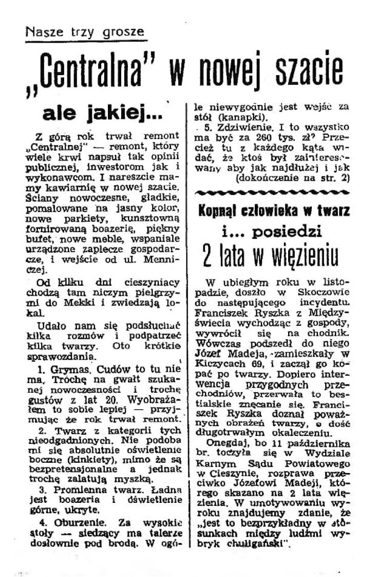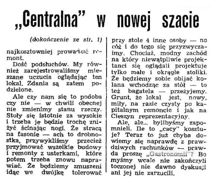 Centralna mieściła się w kamienicy na rogu Cieszyńskiego rynku przy ulicy Menniczej. Dziś w tym miejscu znajduje się Bank ING. Zwano ją też po prostu Centralką i na stałe wryła się w pamięć zarówno Cieszyniaków jak i turystów.