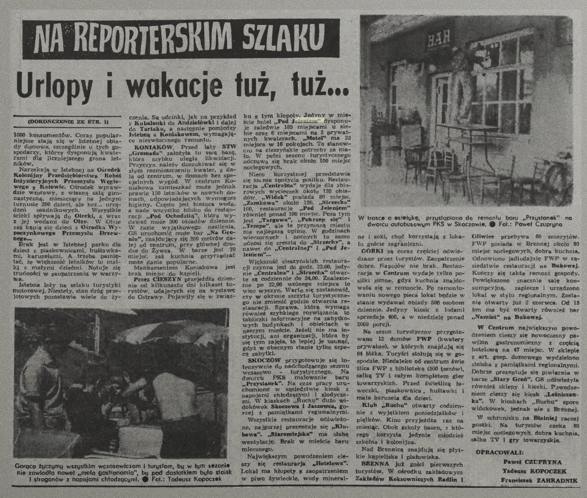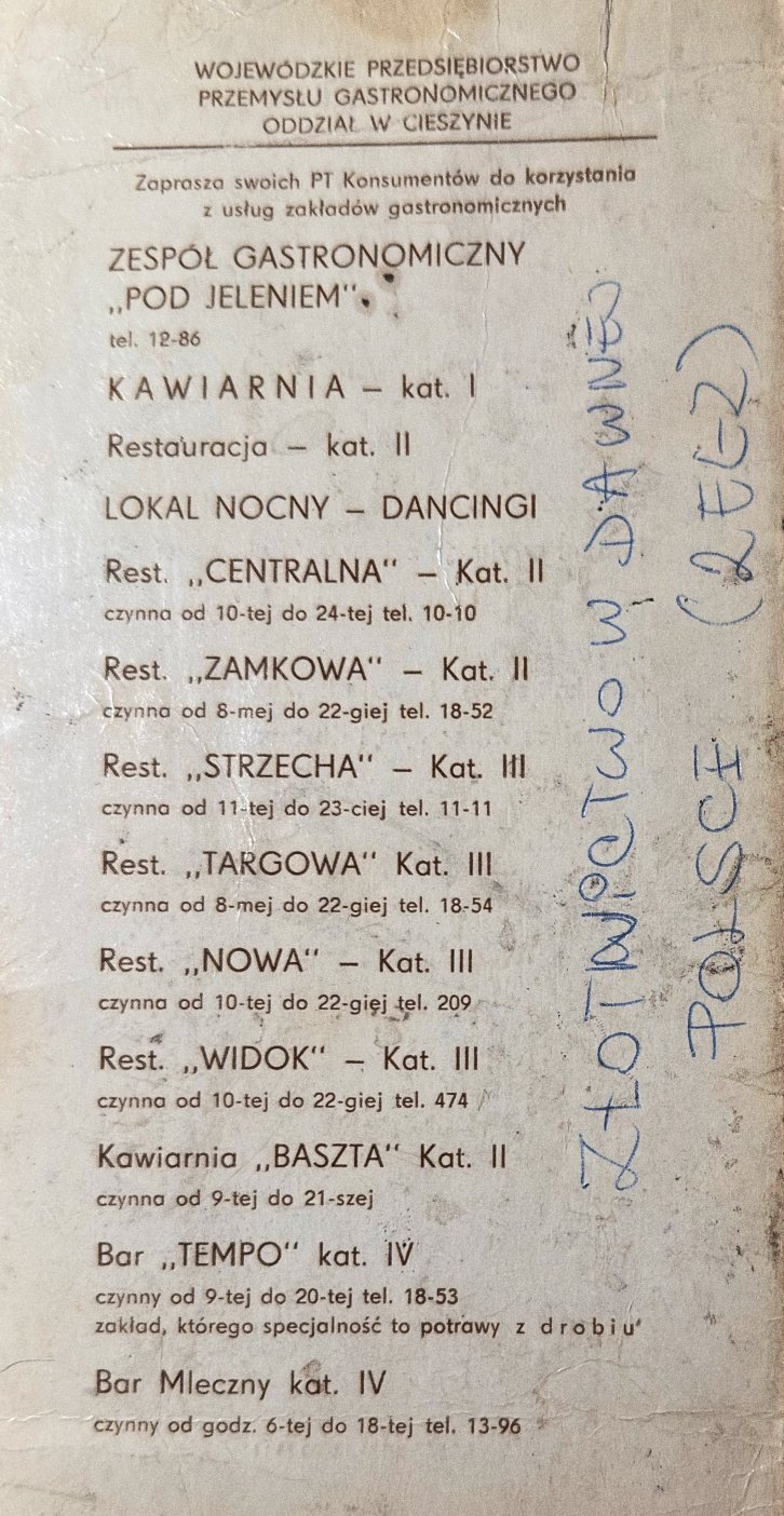 Kawiarnia – restauracja, w okresie letnim wystawiała stoliki pod laubami. Oferowała alkohol, szachy, papierosy, jedzenie i prasę – typowy klimat lokalu z czasów PRL. Przedstawiamy galerię zdjęć, pocztówek i wycinków z gazet, które stanowią swoisty szkic historyczny tego miejsca.